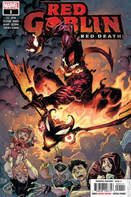 GREAT RESPONSIBILITY / BIG MOUTH / THE WAYSIDE DARKNESS DEAD IS THE NEW RED! In order to finally destroy Spider-Man once and for all Norman Osborn joined himself with the Carnage symbiote, becoming the Red Goblin! Here, at last, is the Red Goblin’s reign of madness and mayhem! So grab your greatest goblin gear and rend your raiments red, for the Red Goblin rides again!