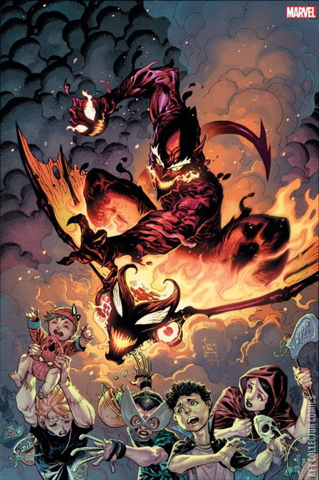 GREAT RESPONSIBILITY / BIG MOUTH / THE WAYSIDE DARKNESS DEAD IS THE NEW RED! In order to finally destroy Spider-Man once and for all Norman Osborn joined himself with the Carnage symbiote, becoming the Red Goblin! Here, at last, is the Red Goblin’s reign of madness and mayhem! So grab your greatest goblin gear and rend your raiments red, for the Red Goblin rides again!