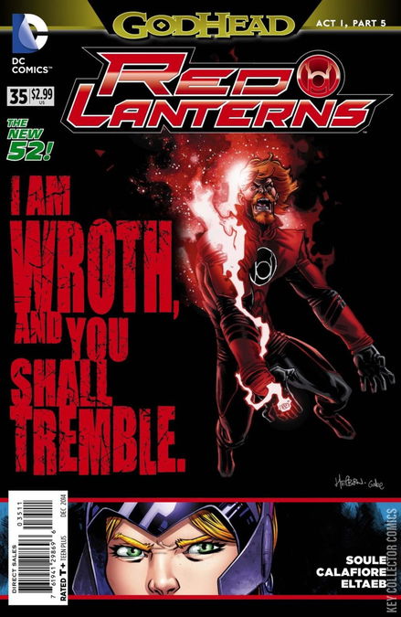 'GODHEAD,' Act 1 Part 5: Guy Gardner's at his lowest point in he horrific aftermath of 'The Atrocitus War,' consumed with rage towards himself for the many lives lost, and he's taking it out on whomever he can! His actions have caught the attention of Earth's sole Green Lantern, Simon Baz! Unfortunately, Earth itself has caught the attention of the New God, Malhedron!? But unlike his green compatriot, Guy's on a rage-filled suicide mission, and he's just looking for a target!