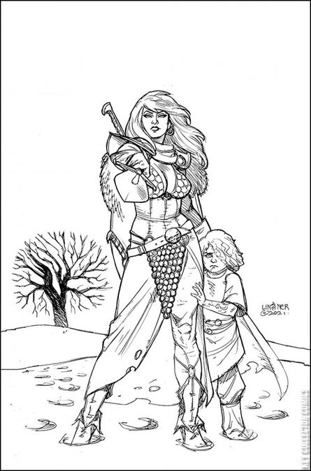 MOTHER, PART ONE. Industry icon MIRKA ANDOLFO presents an all-new vision for the She-Devil With A Sword, in a thrilling new ongoing series! Our story begins in a village on fire, set by members of the dreaded Three-Eyed Shezem. When Red Sonja arrives, the only survivor of the flame is a lively child with curious white tattoos. The child will become Sonja's travel companion, on a journey from hardened ice to imposing forests, where dangerous secrets wait to be revealed... Begin a trailblazing adventure with MIRKA ANDOLFO (Unnatural, Mercy) and incredible artist GIUSEPPE CAFARO (Suicide Squad)!