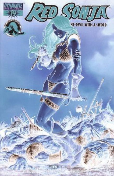 "Animals," the ultimate tale of the She-Devil with a Sword, begins here, as we kick off the start of the 35th Anniversary celebration! Featuring regular Sonja writer Michael Avon Oeming, and new story artist Homs - fresh from the pages of Savage Red Sonja! After the shattering events of last issue, Kulan Gath is in control of the land, with Sonja and her companions sent to the other side of the globe. There, as they encounter strange new lands and beasts, they must decide whether to continue the quest against Gath, or cast their fates to this strange new world... a world of the "Animals!" Featuring a stunning new cover by Sean (Wolverine) Chen, along with Kevin ("52") Nolan, and Dynamite artists Adriano (New Battlestar Galactica: Zarek) Batista and Homs (Savage Red Sonja: Queen of the Frozen Wastes), all shipping in an equal ratio! Plus, don't miss the foil cover featuring all-new art from the legendary Frank Brunner!