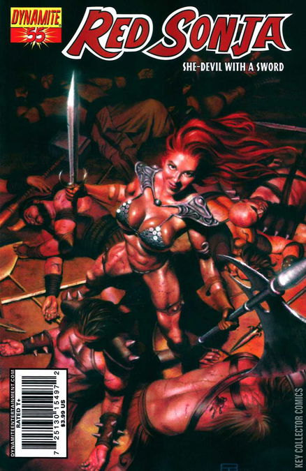 What do you do when the war is over and your comrades are dead on the battlefield? You find the nearest tavern and drink a toast: 'To Absent Friends.' Red Sonja considers her next move after the deadly conflicts in Shem (issues #51-#54), but where there's a tavern, there's some drunken fool who starts a fight...