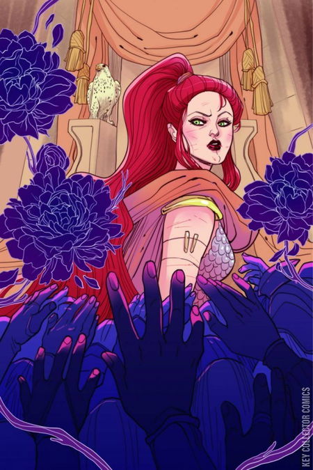 As her people turn warlike and become more vicious than even their enemies, Red Sonja battles to save Hyrkania from its own army. Racing to the throne, with a price on her head, Sonja finds herself entangled in the charms and wiles of a mysterious and beautiful performer... and when the face of the King is revealed at last, Sonja is captured in intrigues more deadly than any she has known!