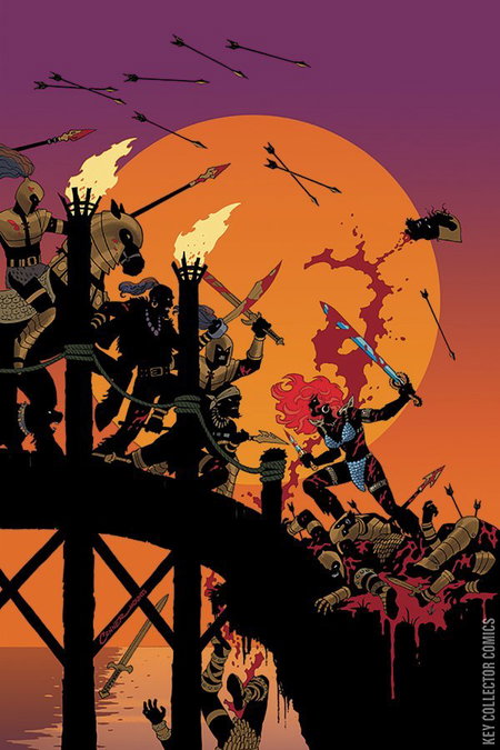 The penultimate chapter in Mark Russell's first year of Red Sonja. Dragan The Magnificent's complete victory is assured, save for one She-Devil, incapable of dying, unwilling to cede control of a bridge...