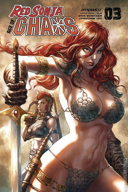 Red Sonja, paired with the half-vampire Chastity, is on the path to setting things right, restoring the timeline and hopefully saving humanity in the process. But Chastity isn't the only strange visitor from another time; Jade, Evil Ernie, and Purgatori have all come to Hyboria as well, and they've taken a shine to the savage world as an easy place to indulge their dangerous natures. They may not take so well to the notion of going home. (Plus, Ernie gets to ride a dragon, which is almost impossible where he comes from.) The She-Devil's adventure in the Age of Chaos continues here!