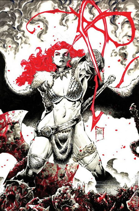 Dynamite proudly presents a prestige project by the world's greatest storytellers! Red Sonja, like you've NEVER seen before...all presented in beautiful black, white, and red! KURT BUSIEK (Astro City, Marvels) and BENJAMIN DEWEY (King In Black: Namor) take you to The Mountains Of Night, a foreboding haunt where the She-Devil With A Sword seeks a precious, priceless item... AMANDA DEIBERT (Wonder Woman) and CAT STAGGS (Smallville) wind you through a mysterious adventure of crimson and ebony... MARK RUSSELL (Red Sonja) and BOB Q (Red Sonja) return to put their final stamp on their classic Red Sonja series, with a coda that will leave you breathless...