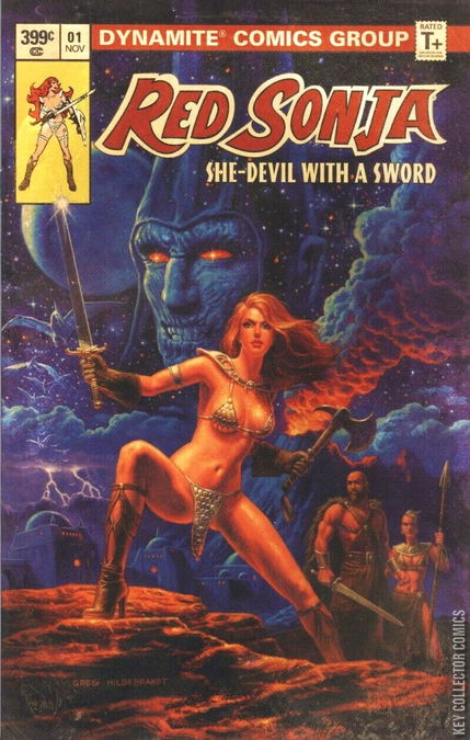 Dynamite Entertainment's Kickstarter project, a commemorative reprinting of Marvel Comics' Red Sonja #1 from 1977. Cover art by Greg Hildebrandt.