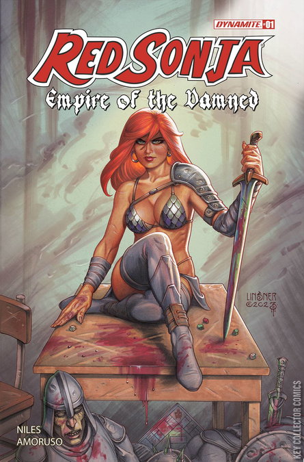 After landing in jail following a night of drunken revelry, Red Sonja hears an outlandish story from a fellow inmate. Deep in the mountains lies a dead city in a valley with no name. Abandoned and forgotten, its fields and streets are littered with the bones of two armies, all destroyed by a curse from a warlock who has long since vanished, along with his vast treasure - untold riches just waiting to be taken. At least that is the legend. But Sonja's cellmate Morgo has more than a diverting tale - he's also got a map that says this legend could well be reality. All they need to do is break out of lockup and hit the road - which may be easier said than done! Crafted by legendary writer STEVE NILES (30 Days of Night, Simon Dark) and rising art star ALESSANDRO AMORUSO, Red Sonja: Empire of the Damned #1 delivers monsters, magic, and mayhem in equal measure - all wrapped up in sumptuous covers from JOSHUA MIDDLETON, JOSEPH MICHAEL LINSNER, JOHN TYLER CHRISTOPHER, and cosplay by RACHEL HOLLON! ALL COVERS CARDSTOCK