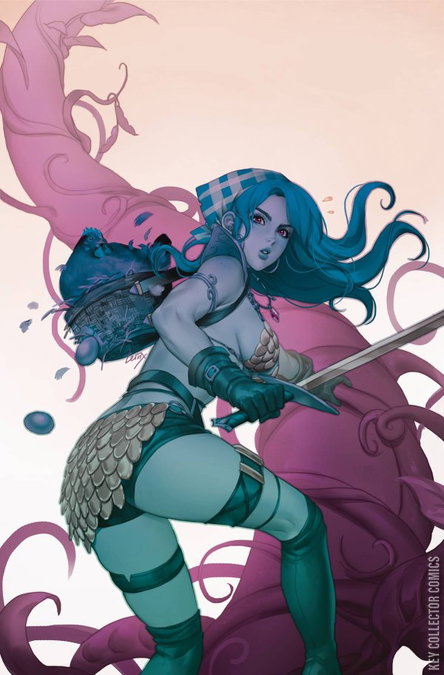 Sonja as you've never seen her...in a fairy tale! Once Upon A Time, a handful of magical beans fell to the ground, and up grew a towering beanstalk that reached above the clouds! Those brave enough to scale the beanstalk would find at its top a hungry giant, with a taste for human bones. But his hunger will not be sated when he is visited by a SHE-DEVIL WITH A SWORD...