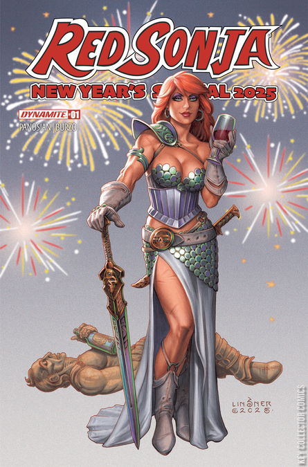 THERE’S A BAD MOON RISING! When Sonja is summoned to a mountain village under the ominous glow of the Red Moon, she finds herself caught in a web of deception, sacrifice, and monstrous foes. Facing betrayal together with impossible odds, the She-Devil must rely on her cunning and ferocity to turn predator against predator in a brutal fight for survival. Auld acquaintances DAN PANOSIAN and VALERIA BURZO raise a toast to the Hyborian Age that will never be forgot in this 40-page one-shot special — featuring celebratory covers from JOSEPH MICHAEL LINSNER, SHANNON MAER, and cosplay by ANI-MIA!