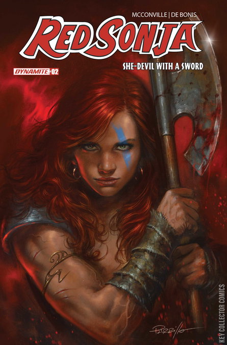 Dynamites bold new take on Red Sonja continues, courtesy of writer Rory McConville (King Spawn) and rising star artist Pablo de Bonis! Red Sonja must protect the last descendent of an ancient bloodline from a revolutionary movement determined to reshape all of Hyboria! After the events of last issue, Sonja has lost her friend and ally and must now take care of his charge, Aretha a young girl sought by the deadly Rising Sun cult! Together, the duo head to Khorshemish, where they seek know-ledge, but find more danger!Cover artists include Stuart Sayger, Lucio Parrillo, Joseph Michael Linsner, and Mike Rooth, plus a stunning Cosplay cover by Dare Taylor!