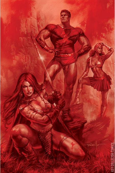 FIRST STUNNING ISSUE! The She-Devil With A Sword has battled barbarians, scuffled with sorcerers, and mananged magical creatures of all sizes. But when a collective of superheroes from THE PROJECT enter her world, will Sonja know how to adjust to their foreign ways, before they all kill each other? Sword-and-sandal meets glittering superhero sci-fi, courtesy of superstar DAN ABNETT (Legion Of Superheroes) and JONATHAN LAU (Red Sonja)! ...and be sure to pick up Sonja's sister series, VAMPIRELLA: THE DARK POWERS also on sale this month!