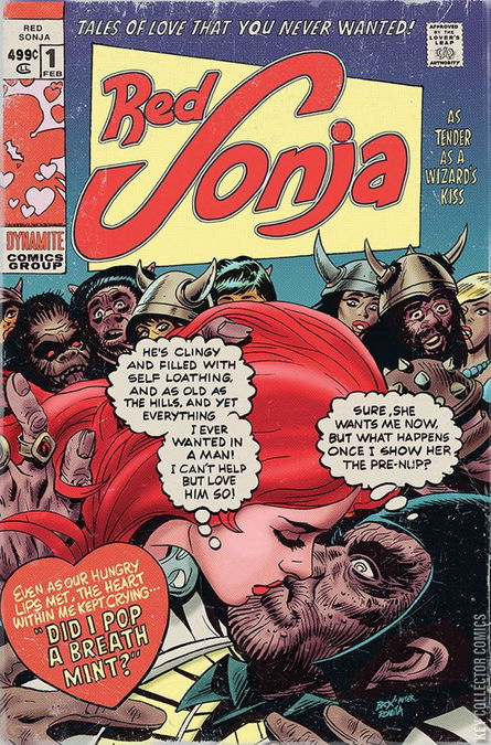 Red Sonja's Hyrkanian habitat is turned upside down as her greatest enemy becomes... her greatest admirer?!?! You thought Kulan Gath being evil was frightful, wait until you see him head-over-heels in loooove!!! Sonja will face her greatest challenge resisting the urge to kill a love that Can. Not. Die!!!! Featuring the Shakespearian sonnets of Bill Willingham, the luscious lines of Giuseppe Cafaro and crush-ridden covers by Joe Linsner, Jimmy Broxton and cosplayer Savannah Polson, you'll feel like cupid's hiding in your pull list!