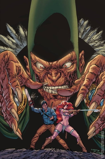 The unlikely alliance of the She-Devil with a Sword and the Guy with the Gun continues as the two reluctant partners race to thwart Kulan Gath and his unholy Deadite horde! The quest to keep the Necronomicon out of Gath's twisted hands takes a turn for the subterra-nean as Sonja and Ash prepare to enter the Tomb of the Three Kings and these definitely ain't the ones that followed a certain star to Bethlehem! Veteran S-Mart shoppers TIM SEELEY and JIM TERRY fill readers' carts with action, adventure, and unadulterated mayhem in Red Sonja vs. The Army of Darkness #3 featuring bonus cover coupons courtesy of SEELEY, BJORN BARENDS, TOM RANEY, and NIKKOL JELENIC!
