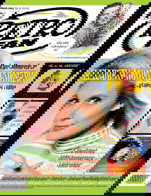 We share magic memories of Elizabeth Montgomery, celebrating the 60th Anniversary of TVs Bewitched! Plus: The Seventies film thriller Time After Time (with Nicholas Meyer, Malcolm McDowell, and David Warner), The Alvin Show, Buffalo Bob Smith and Howdy Doody, Peter Gunn, Saturday mornings Run Joe Run and Big John Little John, a trip to Camp Crystal Lake, and more fun, fab features! Featuring columns by Andy Mangels, Will Murray, Scott Saavedra, Scott Shaw, and Mark Voger! Edited by Michael Eury.