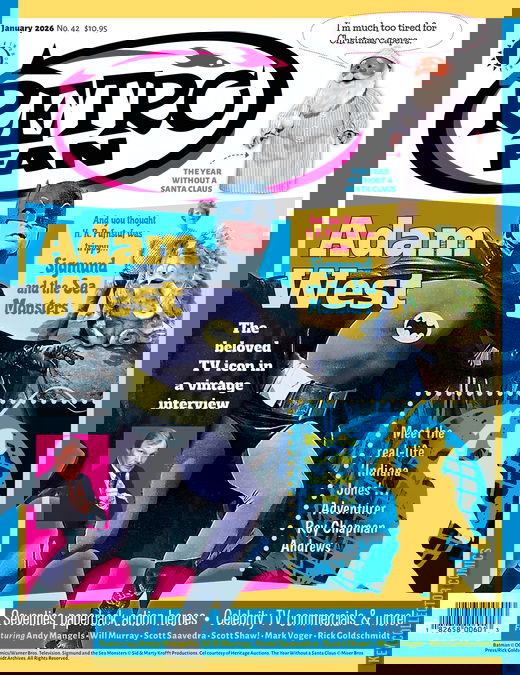 Steady, old chum… it’s RetroFan’s profile of beloved TV Batman Adam West! Plus: Sigmund and the Sea Monsters, Rankin/Bass’ The Year Without A Santa Claus, celebrity TV commercials, real-life ‘Indiana Jones’ Roy Chapman Andrews, ’70s paperback heroes, and more! Featuring columns and contributions by Andy Mangels, Will Murray, Scott Saavedra, Scott Shaw, Mark Voger, Rick Goldschmidt, and editor Ed Catto.