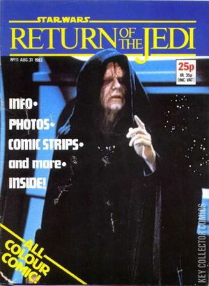 Return of the Jedi Weekly 11 is the eleventh issue of Return of the Jedi Weekly, the continuation of the Marvel Star Wars UK series. This issue reprints part two of the story printed in the US as Star Wars 75: Tidal, along with part one of Star Wars 2: Six Against the Galaxy. The letters page contains a letter written by future Star Wars Insider contributor Mark Newbold under his fan-fic psyeudonym of Jan Lomona.