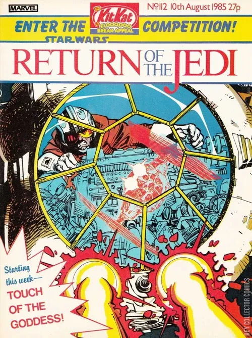 Return of the Jedi Weekly 112 is the one-hundred-twelfth issue of Return of the Jedi Weekly, the continuation of the Marvel Star Wars UK series. This issue reprints part one of the story printed in the US as Star Wars 61: Screams in the Void, and part one of the story printed in the US as Star Wars 99: Touch of the Goddess.