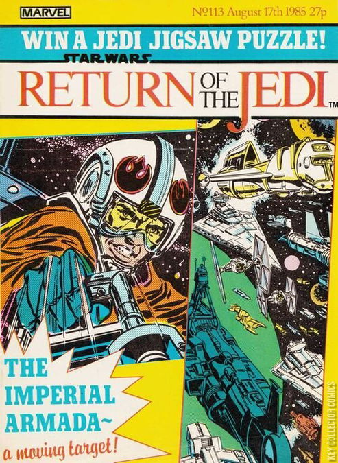 Return of the Jedi Weekly 113 is the one-hundred-thirteenth issue of Return of the Jedi Weekly, the continuation of the Marvel Star Wars UK series. This issue reprints part two of the story printed in the US as Star Wars 61: Screams in the Void, and part two of the story printed in the US as Star Wars 99: Touch of the Goddess.