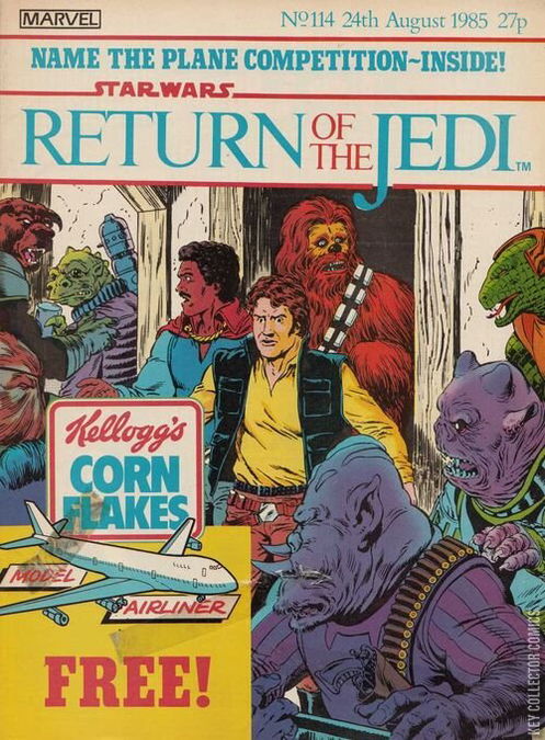 Return of the Jedi Weekly 114 is the one-hundred-fourteenth issue of Return of the Jedi Weekly, the continuation of the Marvel Star Wars UK series. This issue reprints part three of the story printed in the US as Star Wars 61: Screams in the Void, and part three of the story printed in the US as Star Wars 99: Touch of the Goddess.