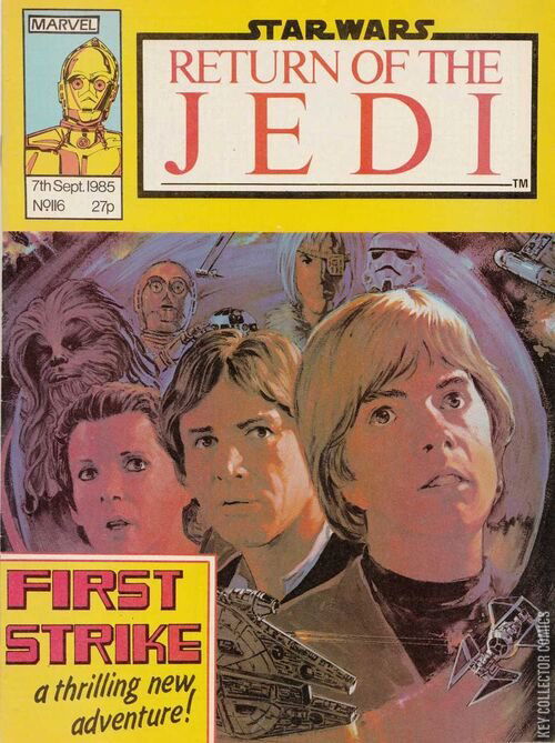 Return of the Jedi Weekly 116 is the one-hundred-sixteenth issue of Return of the Jedi Weekly, the continuation of the Marvel Star Wars UK series. This issue reprints part one of the story printed in the US as Star Wars 62: Pariah!, and part one of the story printed in the US as Star Wars 100: First Strike.