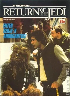 Return of the Jedi Weekly 24 is the twenty-fourth issue of Return of the Jedi Weekly, the continuation of the Marvel Star Wars UK series. This issue reprints part five of the story printed in the US as Star Wars 77: Chanteuse of the Stars..., along with part two of Star Wars 9: Showdown on a Wasteland World! and part one of Star Wars 10: Behemoth from the World Below.