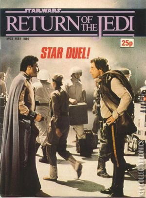Return of the Jedi Weekly 33 is the thirty-third issue of Return of the Jedi Weekly, the continuation of the Marvel Star Wars UK series. This issue reprints part two of the story printed in the US as Star Wars 79: The Big Con, along with part one of Star Wars 15: Star Duel.
