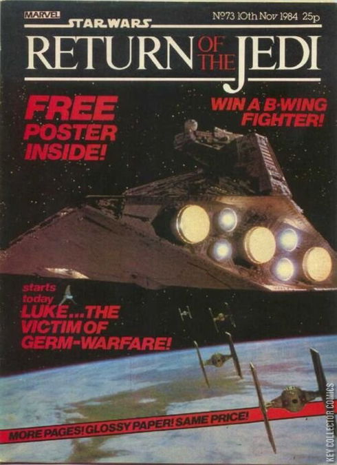 Return of the Jedi Weekly 73 is the seventy-second issue of Return of the Jedi Weekly, the continuation of the Marvel Star Wars UK series. This issue reprints part one of a story printed in the US as Star Wars 50: The Crimson Forever, and part two of the story printed in the US as Star Wars 88: Figurehead.