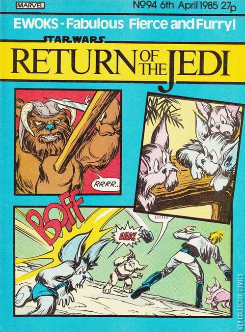 Return of the Jedi Weekly 94 is the ninety-fourth issue of Return of the Jedi Weekly, the continuation of the Marvel Star Wars UK series. This issue reprints part two of the story printed in the US as Star Wars 55: Plif!, along with part two of Star Wars 94: Small Wars.