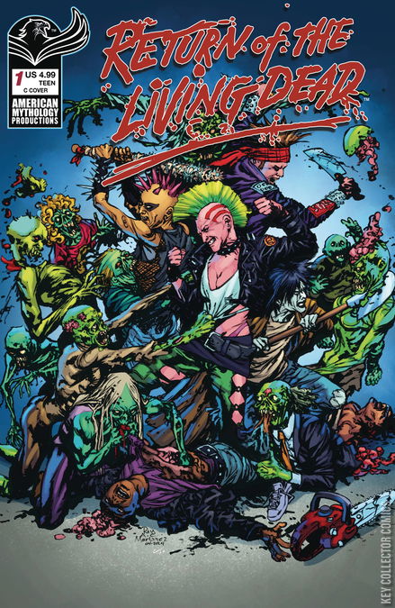 Just when you thought it was safe to go back to the cemetery, we deliver a brand new sequel story to the original movie! The movie that changed what we know about zombies and helped to create a whole new genre in modern horror! What do you get when you mix a pack of party-hungry skateboarders, and a group of summer interns left alone in an amusement park overnight? How about we throw in a couple misplaced barrels of Trioxin-245? It's zombie comedy horror action - 1980's style! The mega-cult classic Return of the Living Dead returns with a bold new comic book adventure capturing the Brains, the Blood, and the Fun of the original 1985 film. You think this is a #!@#* comic? This is a way of life! American Mythology Comics proudly presents Return of the Living Dead 'Party Time'! Send�more�readers!