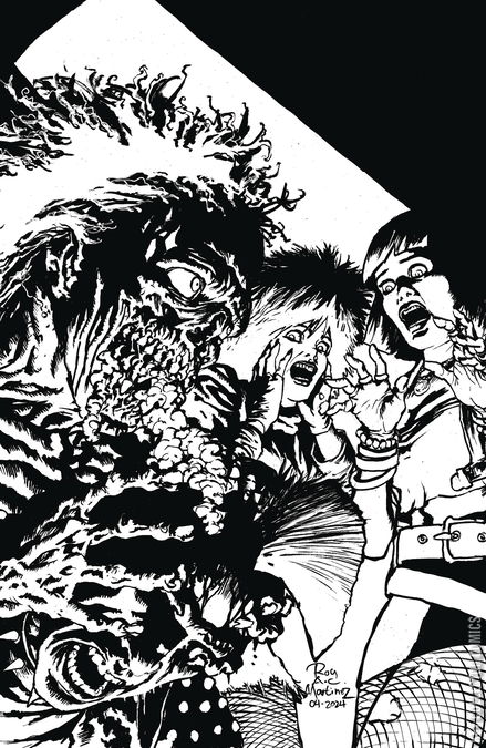 Take a bite out of collectibles with this rare black & white limited edition virgin art cover to Return of the Living Dead #3 by Roy Alan Martinez! Listen up, undead-heads! Return of the Living Dead is back and bolder than ever in this brain-chomping, Trioxin-flavored, run-for-your-lives comic book series serving up another dose of dark horror comedy for the hungry masses! The two groups of survivors fight their way through an amusement park full of brain craving zombies, knowing that the only way to survive is to join forces. That won't stop the Melted Chick and her minions from getting their final revenge as the undead inhabitants of the park continue to rise and join the ranks of the growing army of corpses. And just when the night seems at its darkest, a surprise savoir comes forward with one last hope of getting off the island before they all become a feast for the undead hordes! Get Bitten by Return of the Living Dead issue 3!