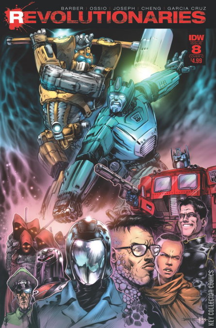 OPTIMUS PRIME VS. BARON IRONBLOOD! The final mystery is revealed as Baron Ironblood reveals his true identity! Only by teaming with Transformers leader Optimus Prime do the Revolutionaries have a chance to save Earth-and the whole Hasbro universe! The senses-shattering conclusion to Revolutionaries leads directly into next month’s massive crossover event!