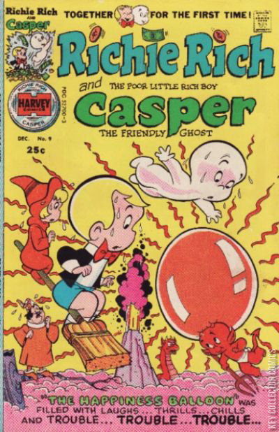 "The Happiness Balloon"; Richie is drawn to the Enchanted Forest, where a balloon that grants wishes is causing havoc. Untitled one-page story; Mr. Rich shows Richie one of his most interesting factories. "A Very Special Dinner Party" text story. "The Sneer Machine"; Reggie causes trouble at a dinner party when he uses a small device that can transmit sneers.