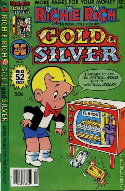 Giant-Sized Issue. Sad Sack in "Happy Landings" Hostess Fruit Pies ad (inside front cover), Richie Rich in "The Baddies of Pleasant Ridge" Pt. 1, Richie Rich 'untitled' (1 pg), Richie Rich The Baddies of Pleasant Ridge Pt. 2 "They're Very Gold Blooded", Richie Rich in "Wild about the Wilderness", Richie Rich in "The Butler's Odd Behavior", Richie Rich and "Gardo", Richie Rich 'untitled' (1 pg), Reggie in "Don't Show Off!", Richie Rich 'untitled' (2 pg), Little Dot in "Uncle Lowfer". 52 pages, FC. Cover price $0.50.