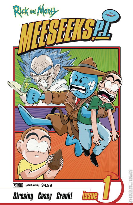The remote to the interdimensional cable box has gone missing! Desperate to find it before Rick can berate him, Jerry enlists the help of Meeseeks, P.I., and the two set off to retrieve the remote, unraveling a massive interdimensional cable conspiracy hidden right underneath their noses! From the mind of Fred C. Stresing (Rick and Morty, Invader ZIM) comes a medium-to-hard-boiled Rick and Morty mystery in an all-new four-issue limited series!