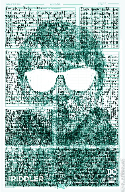 The penultimate issue of this hit miniseries features an unusual break in format, as we will see Edward Nashton constructing his master plan for taking down the corrupt officials and criminals of Gotham City in the pages of his journal. As his mind spirals deeper and deeper, so too does his writing become more unhinged. How can he continue to labor at his accounting job by day while also become more enraged by what he's uncovered? As shown in The Batman movie, Edward fills thousands of pages with his rantings. Here we get a glimpse into something that was never meant to be seen and a mind equally brilliant and unhinged. By the end, a turning point will be reached and Gotham's greatest menace will come one step closer to being unleashed. Actor Paul Dano (The Batman) and artist Stevan Subic continue the origin of the Riddler, leading up to his appearance in Matt Reeves's epic film.