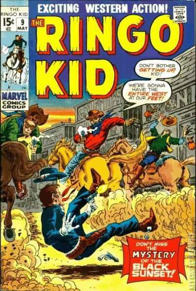 Home / Marvel / Ringo Kid / Ringo Kid #9 Marvel Released May 1971 Ringo Kid #9 Add to Collection Want It Synopsis No synopsis available. Issue 9 of 30 Add to Collection Buy it on eBay Buy on eBay Low $1 Mid $2 High $8 Synopsis No synopsis available. Details Series Ringo Kid Cover Date May 1971 Pages N/A UPC N/A Cover Price N/A Final Order Cutoff N/A Creators Artist Herb Trimpe Price Guide Log in or subscribe to access detailed graded price information and market insights. Log In Subscribe