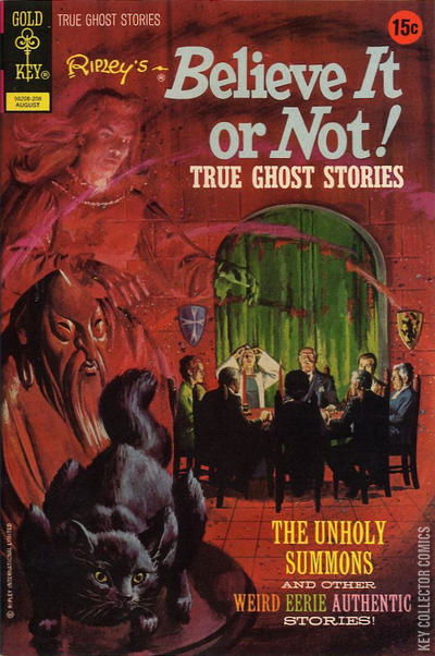 Painted cover art by George Wilson. The Surprise Party, art by Luis Dominguez. The Ghost Hunter text story, art by Joe Certa. But No One Knocked, art by Jack Sparling. The Ghost of Spire Church, art by Oscar Novelle. The Unholy Summons, art by George Roussos. Cover code: 90208-208