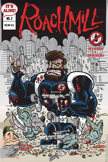 IT'S ALIVE! presents the return of this fondly regarded series from the 1980s by Rich Hedden & Tom McWeeney about a mutated exterminator in 30th century New York. Need an exterminator to handle those rats? Pesky roaches ruining your sleep? Maybe Grandma's getting on your nerves? Call Roachmill Pest Control and we'll get the job done! The year is 2998 and the pest control industry has changed. Injured and pursued by police, Roachmill realizes he's been framed, and must clear his name before he becomes just another dead roach. Classic cover by Rich Hedden & Tom McWeeney. Variants by Mark A. Nelson, Niall Orourke, and Gary Fields.