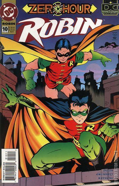 TWO BIRDS ONE STONE A time shift results in the Tim Drake Robin teaming up with a younger Dick Grayson Robin to work a case.