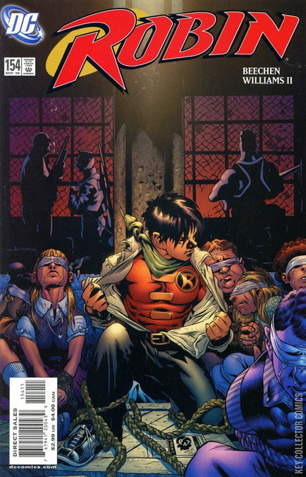 RANSOM DEMANDS Robin begins investigating a string of kidnappings. All of the missing persons are children and teenagers, but moreover, they all hail from some of Gotham's wealthiest families. At Tim's urging, Bruce Wayne publicizes his recent adoption of Tim in the hopes of propping him up as a potential victim. Robin patrols the streets hoping to get a bead on the kidnappers. He locates them in the midst of a crime and tries to stop them but for the inopportune appearance of Dodge. Dodge's constant teleporting fouls up Robin's plan and the kidnappers escape. Robin considers him a life-threatening menace and warns him once again to retire his masked identity. Dodge tells him that he's unstoppable and teleports away. The following day at school, Tim and Zoanne meet Jared Walton, a competitive rich kid who openly boasts about his family's wealth. During lunch, they drive down to Wackdonals – a popular fast food eatery. The kidnappers pull into the parking lot with their van and grab Tim and Jared. Although blindfolded, Tim is able to determine where the van is taking them based upon the sounds of the road, and the shifting weight of the vehicle. At the hideout, Tim's blindfold is removed and he meets the ringleader, Torrance. He makes a break for it and escapes into another section of the compound where he changes into his Robin costume. He then begins making his way back to the main room. Suddenly, Dodge appears in the middle of the building ready to fight. The kidnappers draw their guns on him as Robin watches from overhead.