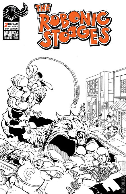 Saturday morning cartoons are back! The Robonic Stooges leap from the TV screen to comics with another slapstick issue! In 'Fantastic Fools' the Robonic Stooges attempt to stop a meteor hurtling toward Earth only to awaken the MoleShemp! And in 'The Island of DrEams' the boys win a vacation to a tropic island. Unfortunately instead of a vacation they end up the pawns of a strangely poetic mad scientist! This issue is crammed with awesome extras too - all taking you back to the days watching cartoons with your favorite bowl of cereal. The Robonic Stooges #2 Fantastic Fools is available with three covers - Main by Eric Shanower, Variant by Dean Rankine, and a 350 copy Limited Edition Black & White collector's variant!