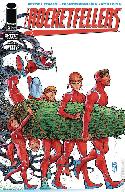 Wanted Dead or Alive: The Rocketfellers! Drone Bots scour the Ghost Machine Multiverse to track down the most dangerous fugitive family of the 25th-century! But the Rocketfellers remain hidden in Earth's distant past: the year 2024! For now, the family navigates its new environment by searching for the perfect Christmas tree in hopes of an explosion-free holiday! Improbable guest appearances by Geiger, Rook, Redcoat, and the denizens of Hyde Street!