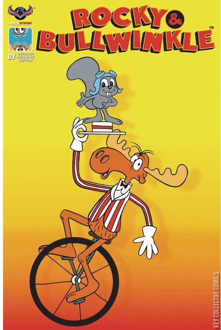 Hey Rocky, watch me pull a rabbit out of my hat! That staple of Saturday morning cartoon shenanigans, The Rocky & Bullwinkle Show, is back in all its satirical slapsticky joy! The entire misfit cast of Jay Ward's wonderful series are here - Rocket J. Squirrel, Bullwinkle the Moose, Mr. Peabody & Sherman, Dudley Do-Right, and everyone's favorite Russian hooligans, Boris and Natasha! American Mythology celebrates the return of a one-of-a kind comic book with adventures and high jinx that are fresh and funny while remaining true to the look and format of the classics!