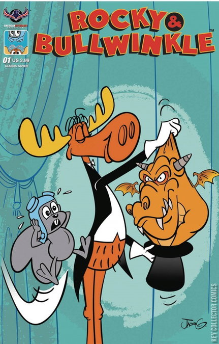 Hey Rocky, watch me pull a rabbit out of my hat! That staple of Saturday morning cartoon shenanigans, The Rocky & Bullwinkle Show, is back in all its satirical slapsticky joy! The entire misfit cast of Jay Ward's wonderful series are here - Rocket J. Squirrel, Bullwinkle the Moose, Mr. Peabody & Sherman, Dudley Do-Right, and everyone's favorite Russian hooligans, Boris and Natasha! American Mythology celebrates the return of a one-of-a kind comic book with adventures and high jinx that are fresh and funny while remaining true to the look and format of the classics!