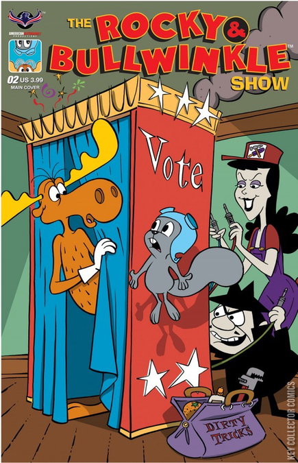 You will believe a Moose can fly! Join us for an all new Rocky & Bullwinkle Show with thrills, chills, spills, and gills? Rocky and Bullwinkle investigate a haunted house but the ghosts and goblins inhabiting this habitat are suspiciously Russian. Boris and Natasha are up to their no goodnickoff antics in 'The Hauntening of Bough House' by Todd Livingston and Jacob Greenawalt! All your favorite memories of Rocky & Bullwinkle are here with new stories told in all its satirical slapsticky style. The Rocky & Bullwinkle Show comes with four covers - Main by S.L. Gallant, Homage by Adrian Ropp, Flying Moose by Greenawalt, and a Retro Animation Retailer Incentive Edition.
