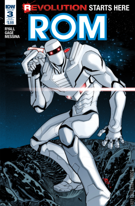 ROM on the run! Pursued by the military, on the hunt for and hunted by DIRE WRAITHS… and at the very worst possible time, Rom’s greatest weapon has failed him! “Earthfall” continues in a non-stop, action-packed way!