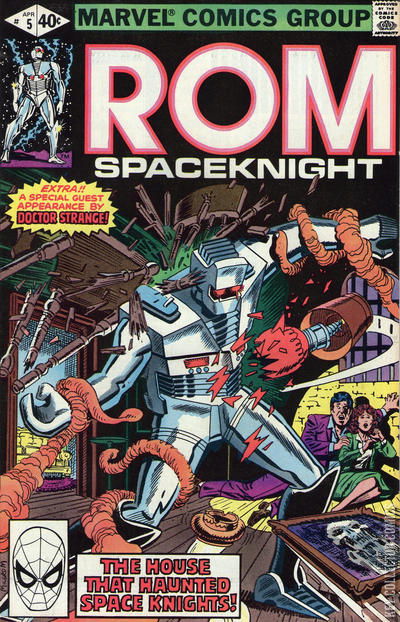 Fearing for the safety of his human friends, Brandy and Steve, Rom retreats from the pursuing Dire Wraiths. Seeking refuge in an abandoned house they soon discover they are not alone. Doctor Strange the Master of the Mystic Arts makes a cameo in the macabre tale "The House that Haunted Spaceknights!"