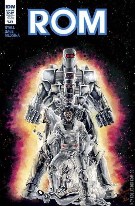 On the peaceful planet of Elonia, a surprise attack by the pernicious DIRE WRAITHS leaves the planet and its Solstar Order defense corps reeling... so what can one young explorer named Rom possibly do to help in the face of such savage an attack? Find out here as IDW proudly presents the full, unfettered origin of ROM, first of the Space Knights in a tale told by the series' ongoing team of Ryall, Gage, and Messina! The true origin of ROM, greatest of the Space Knights! Part of IDW's 2017 Annual Offensive! Over-sized and action-packed key stories in a deluxe format! By the ROM launch team of Ryall, Gage & Messina!