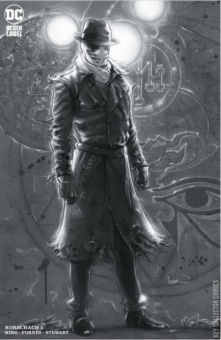 CHAPTER ONE It’s been 35 years since Ozymandias dropped a giant interdimensional squid on New York City, killing thousands and destroying the public’s trust in heroes once and for all. And since that time, one figure in a fedora, mask, and trenchcoat has become a divisive culture icon. So what does it mean when Rorschach reappears as an assassin trying to kill a candidate running against President Robert Redford? Who is the man behind the mask, and why is he acting this way? It’s up to one detective to uncover the true identity of this would-be killer—and it will take him into a web of conspiracies involving alien invasions, disgraced do-gooders, mystic visions, and yes, comic books. Writer Tom King joins forces with artist Jorge Fornés for a new miniseries that explores the mythic qualities of one of the most compelling characters from the bestselling graphic novel of all time, WATCHMEN .